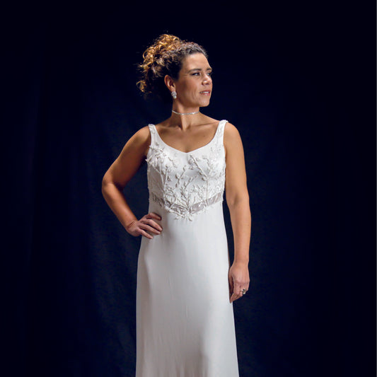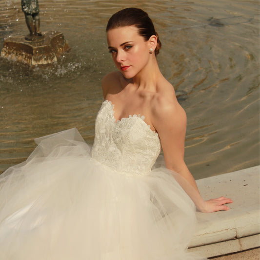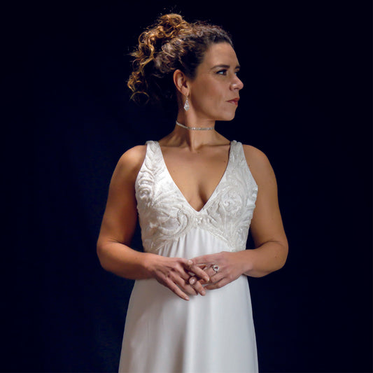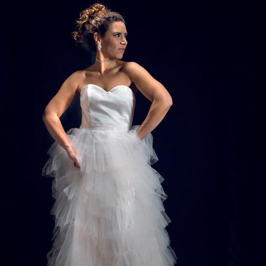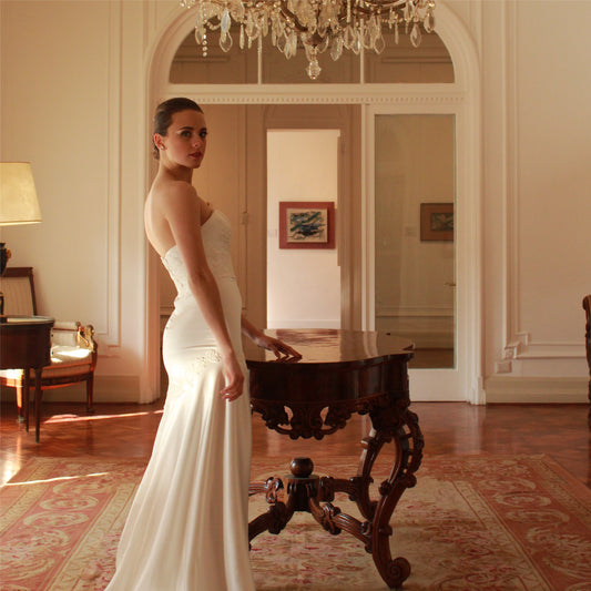 Somos un Atelier especializado en la confección de vestidos de novia. Uno de nuestros grandes beneficios, es que contamos con nuestro propio taller. Lo que nos entrega la posibilidad de tener calces, patrones y telas únicas.